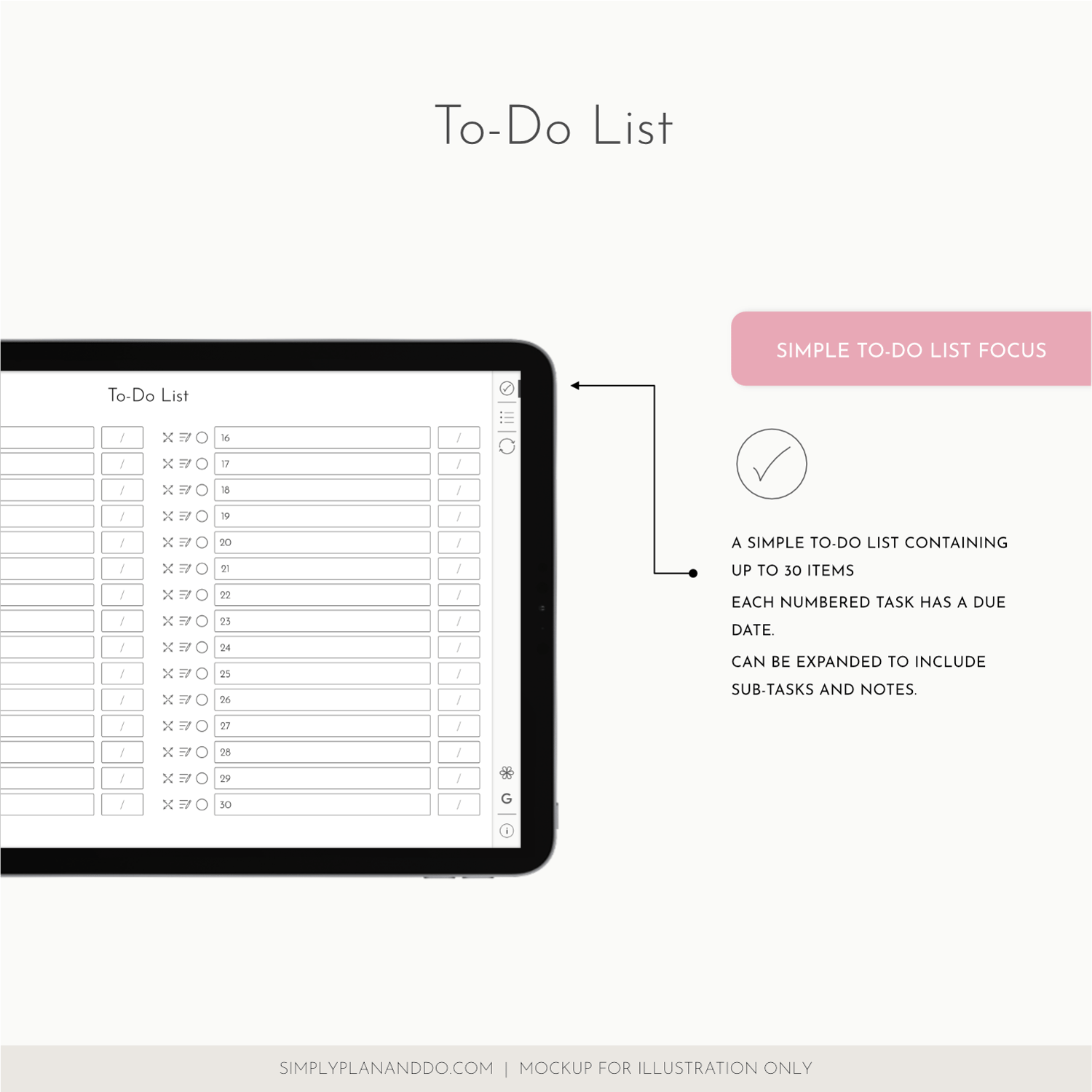 To-Do List contains up to 30 items.